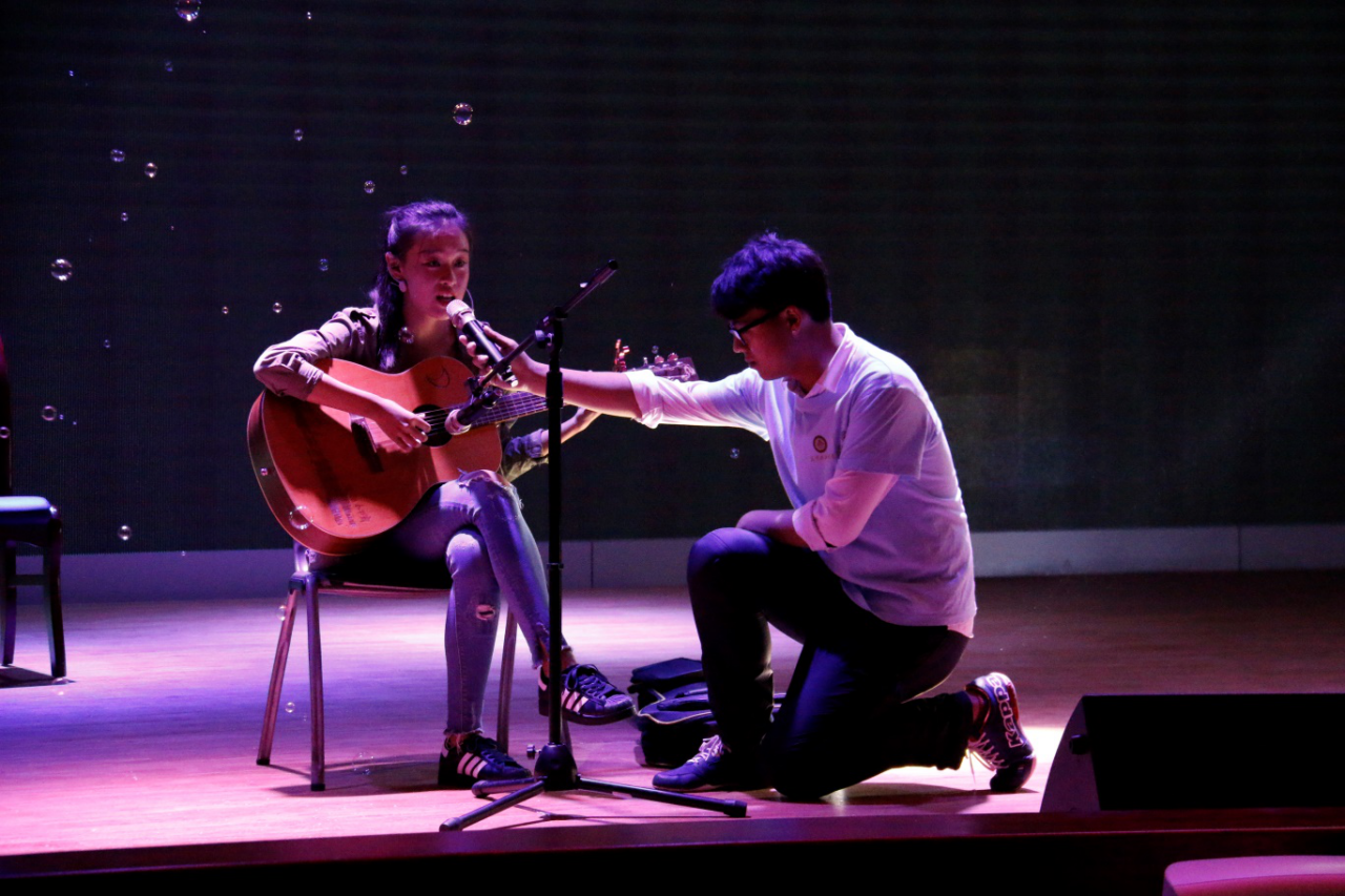 在家以外度过第一个中秋的小学弟学妹,一曲《水调歌头》,圆月映天,思家心切,万种情绪涌上心头,还好有坐在身边的你,握住我的手。