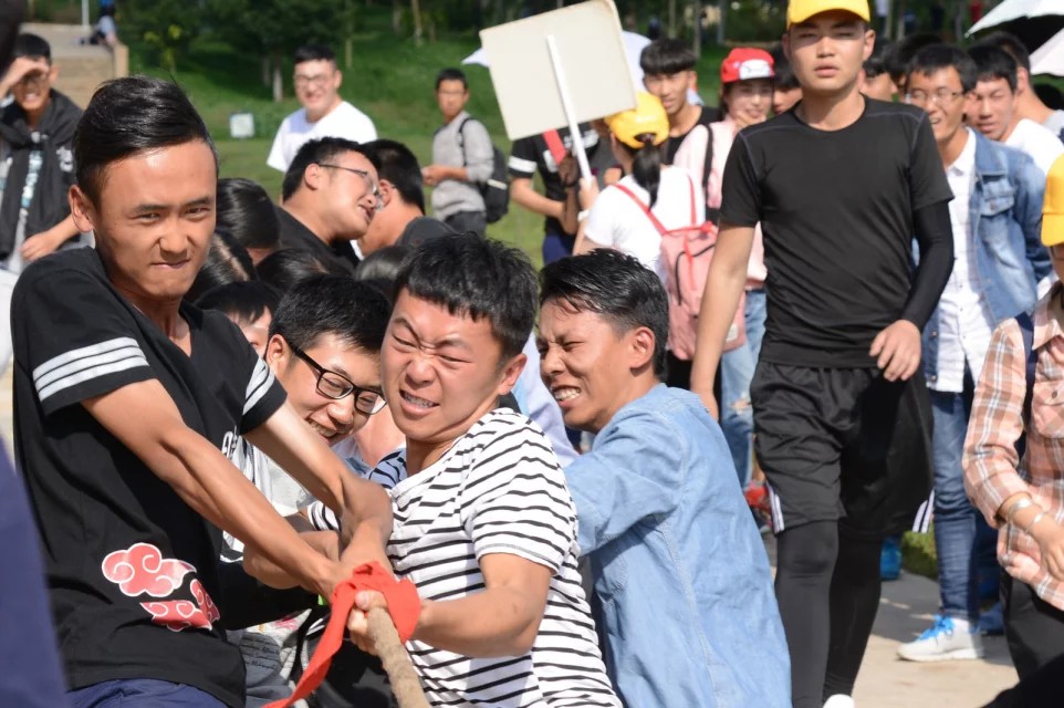 比赛期间不乏感人的瞬间,为了能让班级获得比赛的胜利,参赛队员分析战术、咬紧牙关、绷紧神经,使劲儿把对方拉过来。“一二,一二……”是对参赛队员的鞭策,“加油,加油……”是对参赛队员的期许。方圆不过几米的比赛场地,承载着的是他们对于班级荣耀的执着与努力的拼劲;一根拔河绳,拴着的是他们班级同学之间的深情厚谊与不变的热情。年轻的他们自信飞扬,青春的气息如同初生的朝阳,蓬勃的力量如烈火般挥洒,此时此刻,赛场便是他们青春的舞台,声声加油就是他们最高的奖励。