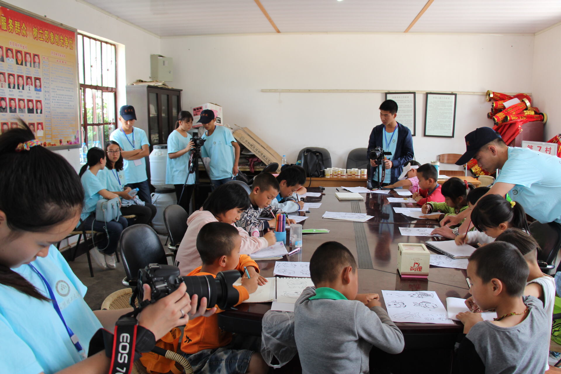 此外,服务队还组织当地留守儿童开展课业辅导、趣味游戏、素质拓展、声乐基础、普通话发音、朗诵、绘画等丰富多彩的活动。在课业辅导中,志愿者们帮助孩子们解决了暑期作业中的难题,并教给他们一些学习方法;志愿者们还组织孩子们在操场上进行“抱成团”“木头人”“跳长绳”等游戏,增进了他们之间的友谊,也使他们意识到了团结的重要性。这些活动提升了留守儿童的艺术审美、文化素养,促进其综合发展。服务队还为他们奉献爱心,送去了一批学习用品,鼓励他们好好学习。