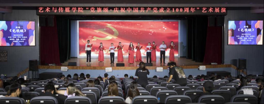 在公教楼西南区小剧场举办庆祝中国共产党成立100周年表彰大会暨“党旗颂·庆祝中国共产党成立100周年”艺术展演。21点技巧