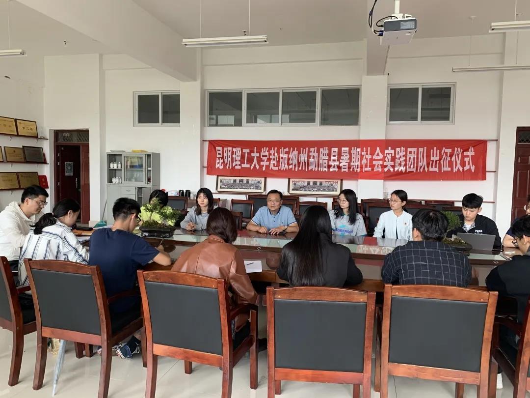 赴西双版纳傣族自治州理论宣讲及通用语言文字普及暑期社会实践团队出征仪式在公教楼209会议室隆重举行。艺传院党委书记孙刚老师、原党委副书记严波老师、学工办主任郝儒梁老师及团委书记桂巧玲老师出席“三下乡”出征仪式,全体实践队员参与本次活动。