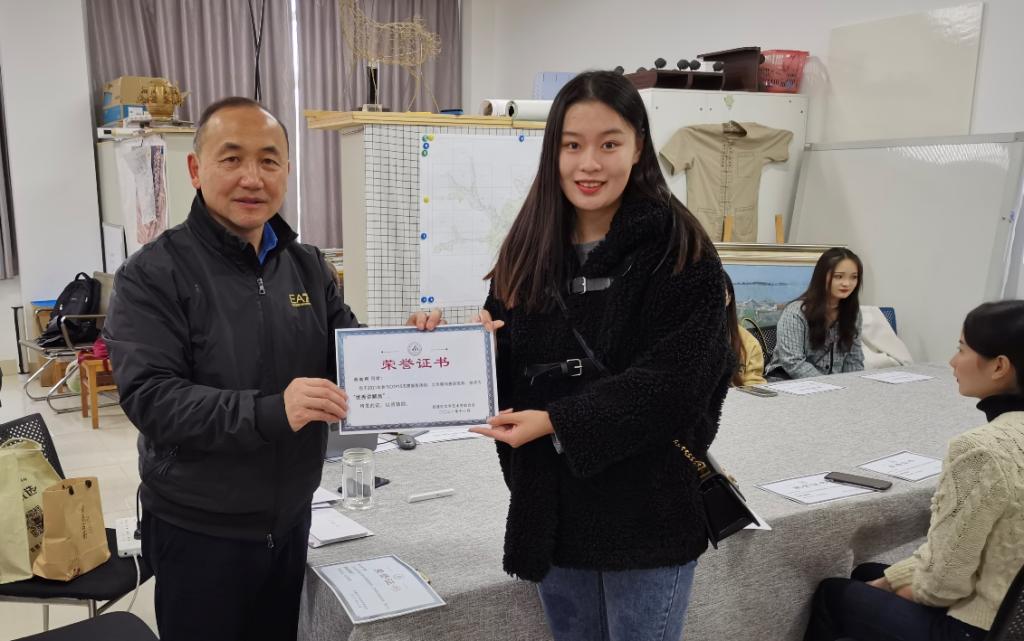 在总结会上,周峰越副校长还为讲解员和志愿者学生颁发了荣誉证书,同学们纷纷表示在此次画展活动中受益良多。