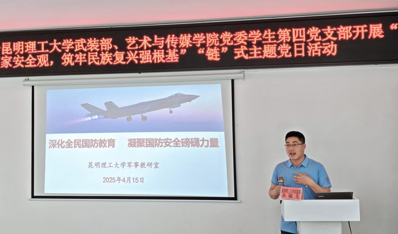 党委学生第四党支部积极响应国家安全宣传教育号召,组织全体党员前往呈贡区致远社区,联合开展了一场以 “树牢总体国家安全观 筑牢民族复兴强根基” 为主题的党日活动。此次活动形式丰富多样,将党规党纪教育、国家安全教育和国防教育有机融合,进一步深化了党员的思想教育,增强了他们的国防意识与国家安全责任感。