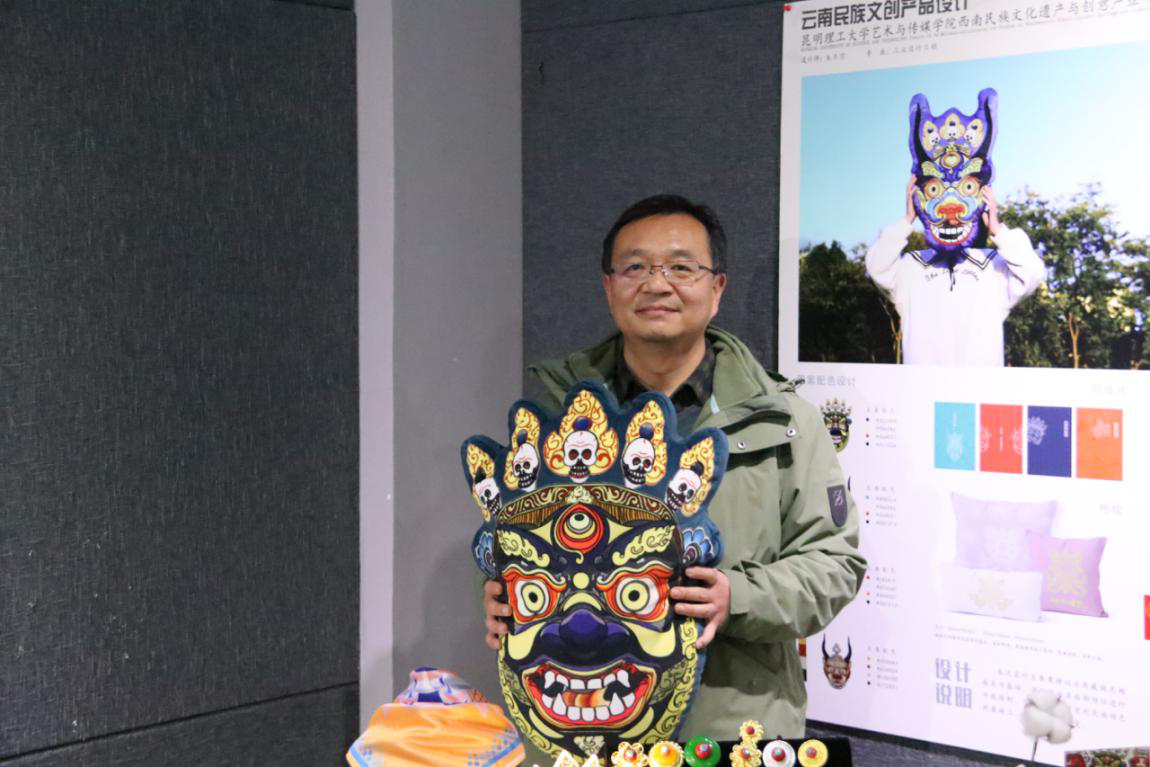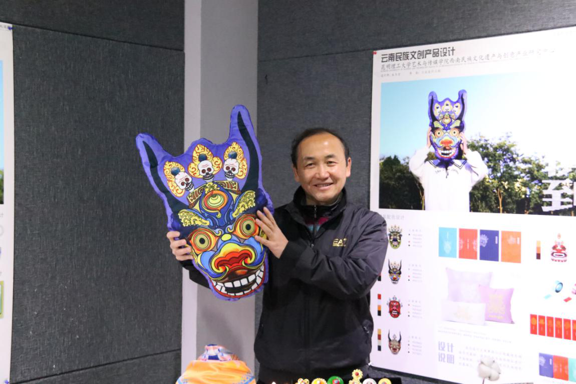 和云南民族博物馆馆校合作的教学模式,认为不仅有利于学生发展和弘扬民族文化,也给予了学生实践与创新的平台。同时,周峰越副校长对参展同学的文创产品表示了肯定,并参与了打卡留念。