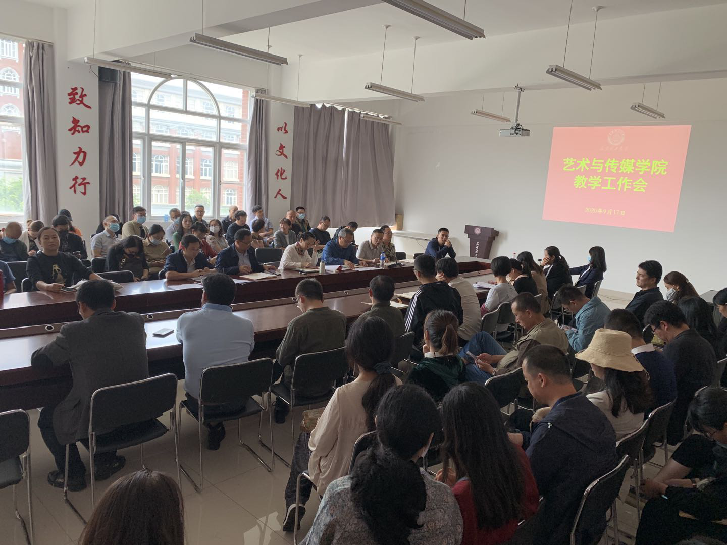 领导班子成员以及全体教职工出席会议。