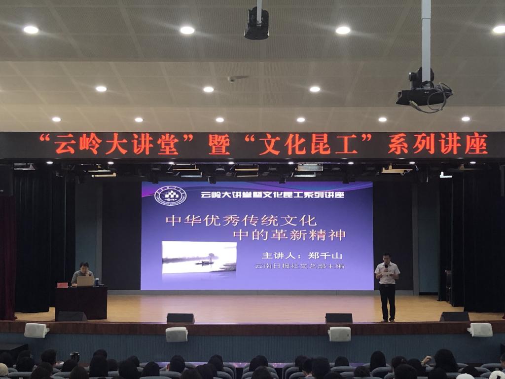 2019年5月16日,云南日报社文艺部主编郑千山应邀在我校小剧场为全校师生作了题为《中华优秀传统文化中的革新精神》的主题讲座。