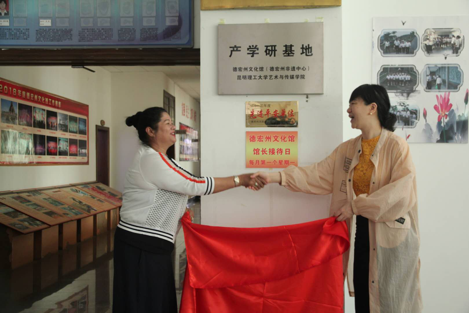 与德宏州文化馆(德宏州非遗中心)在德宏州芒市举行产学研合作挂牌仪式曁2019年度合作工作座谈会。