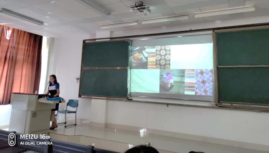 图2 肖雅洁老师在介绍留学法国期间的设计作品