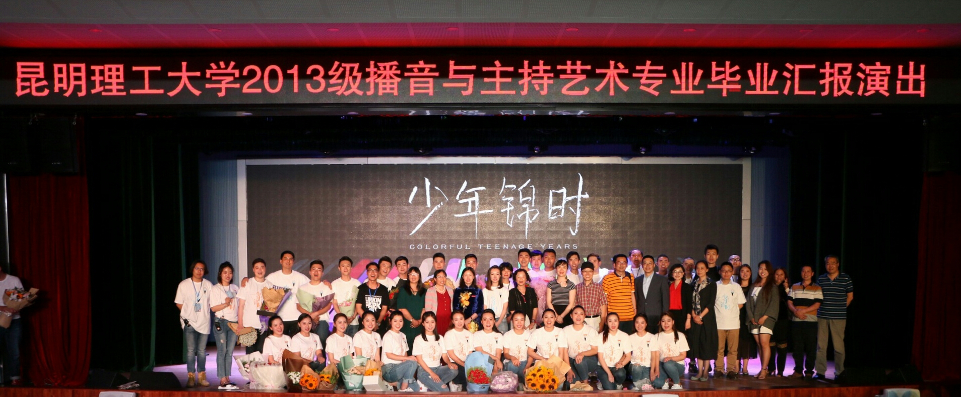 首届本科专业毕业生,此次题为“少年锦时”汇报演出,是该专业四年来专业人才培养、教学成果的集中展示,整场晚会通过网络现场直播,网络浏览、观看人数高达2500多次,通过媒介传播让更多的人见证了晚会的精彩。同学们用扎实的专业技能自豪地昭告,他们会带着母校给予他们的期望走向社会,努力创作属于他们的青春和未来,在追求艺术的道路上勇敢前行,全力拼搏,为昆工增光添彩,谱写灿烂的人生。
