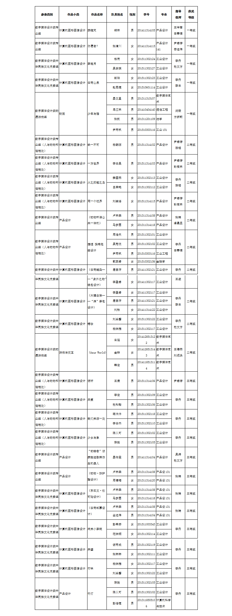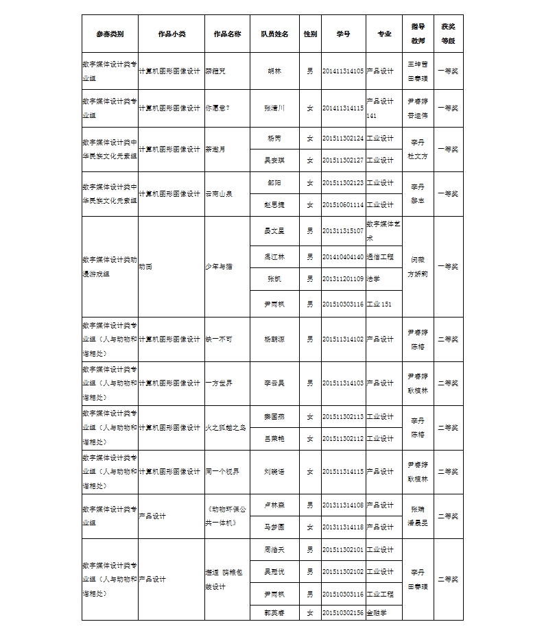其中工业设计系支部书记李丹老师指导的14个作品获奖,工业设计系王坤茜、尹睿婷、张瑞老师、视觉传达设计系支部书记闵薇老师等指导的多项作品也分获一、二、三等奖。