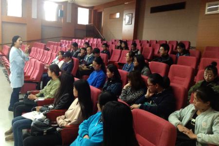 系主任暨传播141班班主任杨璐老师简单回顾了既往本系同学因注重创意与实践能力提升而收获的各种机遇,随后,介绍本系将陆续组织同学们参加的科普视频主持人赛事、讲述云南故事@“二更”等创作活动,希望大家都能发挥所长,用自己富于活力的创造性,编创出一批具有良好传播效果的作品。杨老师亲和、风趣的动员,激发了同学们的参与兴趣。