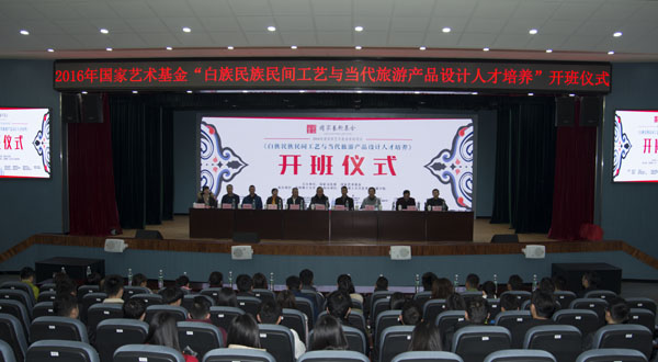 在呈贡校区传媒学院小剧场举行了2016年度国家艺术基金《白族民族民间工艺与当代旅游产品设计人才培养》项目的开班仪式。