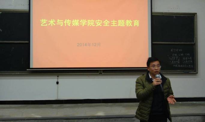 在入党宣誓仪式结束后,本次大会的最后一项由严波副书记对学生的在校安全进行专题教育。严副书记首先总结了之前在安全方面存在的问题,并列举了近段时间社会上和学校中出现的一些突发的安全事件,以真实案例来告诫同学们尤其是在放假期间需要注意的防骗、防盗和外出旅途中的应注意的安全问题。最后,严副书记预祝各位同学在期末考试中能够取得理想的成绩,也祝福大家新年快乐。