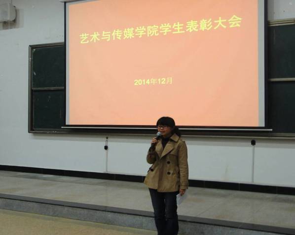 奖学金集体及个人的决定”,共表彰了在2013-2014学年度优秀个人279人次,集体6个,并鼓励其他各年级同学能够认真复习,争取在下学期同样取得优异成绩。之后13级的王维和12级的牛洪昌分别作为品学兼优代表和课外科技创新代表上台交流经验,分享了自己的学习生活经验和获奖感悟,并倡导同学应该珍惜大学时光,争取获得更加优异的成绩。