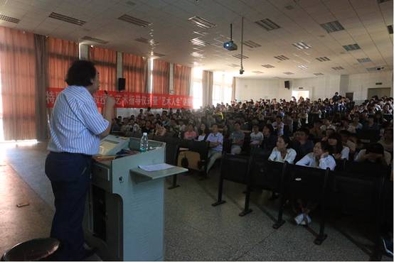 阳光灿烂下午映照出师生们的热情。可容纳300多人的学校多媒体100教室座无虚席。全院师生以及返校参加校庆活动的校友聆听了讲座。