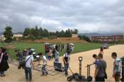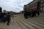 在为大家介绍了一些相关器材的基本知识之后,所有老师和同学们来到学院公教楼大草坪观看,学习航拍设备的设备构成、组装、调试以及升空操作并进行拍摄。刘小毅老师一边为同学们讲解航拍的注意事项和技巧,一边请工作人员进行现场展示组装。航拍主要分为分行和拍摄两个工作部分。航拍设备构成较为复杂,拍摄难度也较大,拍摄工作需要有经验丰富的“飞手”和摄像师共同协作完成,但是拍摄素材是独一无二的,也将会为影视成果带来不同的视觉体验。设备组装调试完成后,刘老师和助手们共同协作,操作航拍设备,通过无线接收显示器,向同学们展示了航拍画面的新视觉体验。