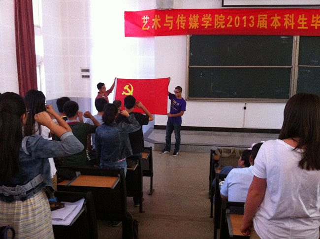 6月13日下午14点,在庄严的毕业典礼上,全体毕业生党员全体起立面向党旗,高声重温入党誓词。高亢激昂的声音回荡会场,充满了对组织的崇高敬意和自己的责任感。党员们觉得活动极有意义,将提醒自己不断提高思想道德素质,增强组织观念和纪律观念,始终牢记党的宗旨,保持共产党员的先进性,在以后的工作中更好地履行党员义务,发挥先锋模范带头作用。