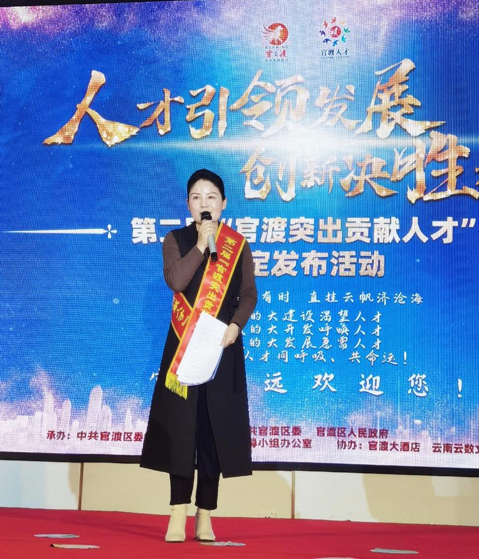 2021年4月20日下午,第二届“官渡突出贡献人才”评定发布活动在官渡大酒店举办。21点技巧 教师孙鸿雁作为民族民间工艺突出贡献人才获得此殊荣。