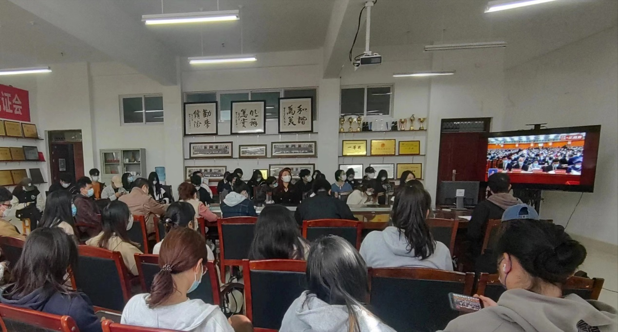 党委组织学院9个党支部师生党员代表146人和团员学生代表50人分别公教楼217和209两间会议室集中收看了大会直播。学院严格落实新冠疫情防控措施,确保了收看工作的顺利进行。学院1300余名师生也通过移动终端自行观看了大会直播。