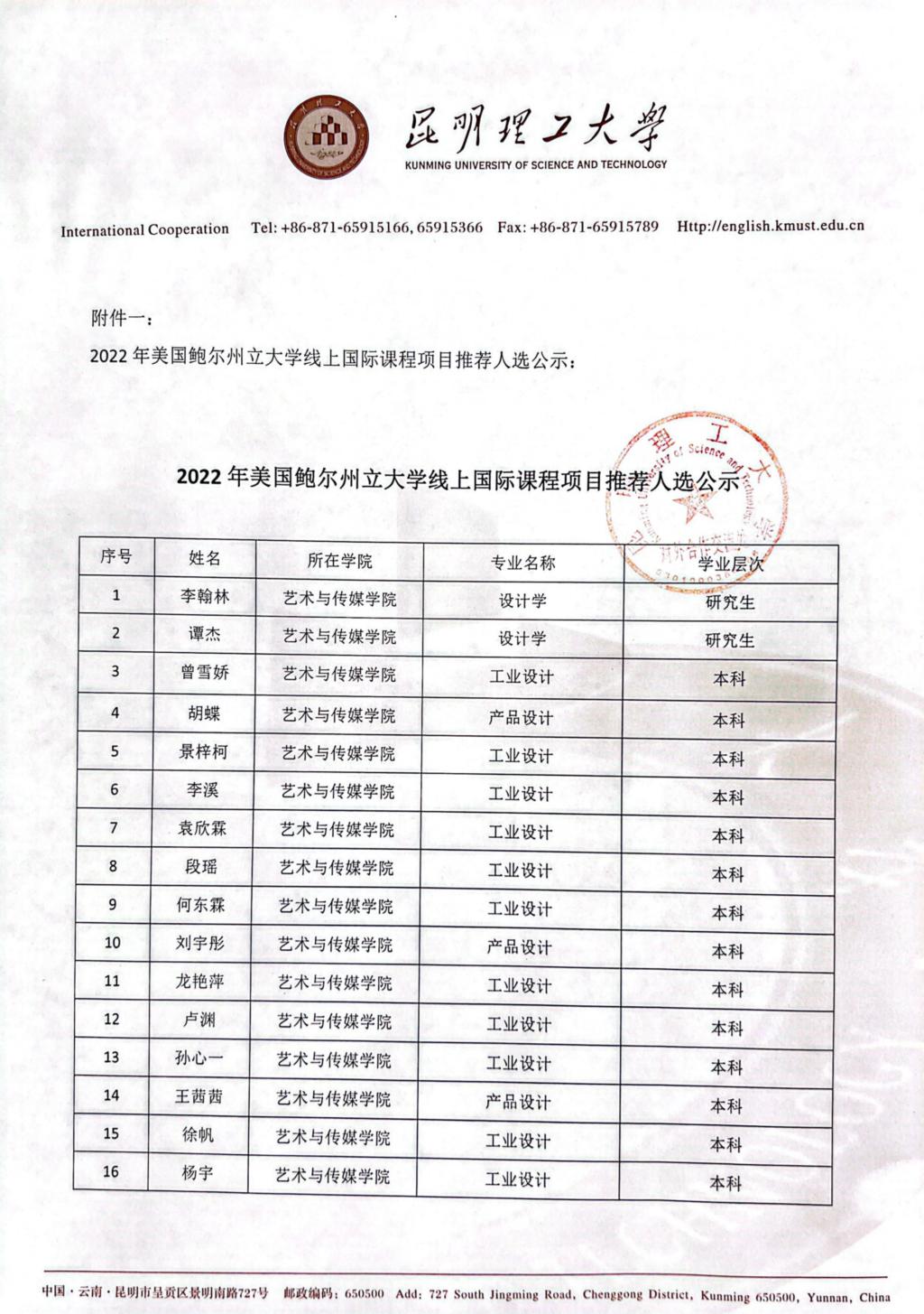 工业设计的专业发展与国际化建设,我校特面向该专业范围遴选30名优秀学生参加美国鲍尔州立大学( Ball State University )线上“工业生产技术”国际课程学习。