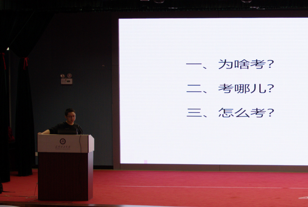崔颖老师为即将步入大四的同学们普及考研相关知识,围绕着“为啥考”“考哪儿”“怎么考”提出自己的经验与建议;田野老师就出国留学方面提出了建议与指导,讲解了申请国外大学需要做的努力与准备,辨析了考研与出国留学如何选择。