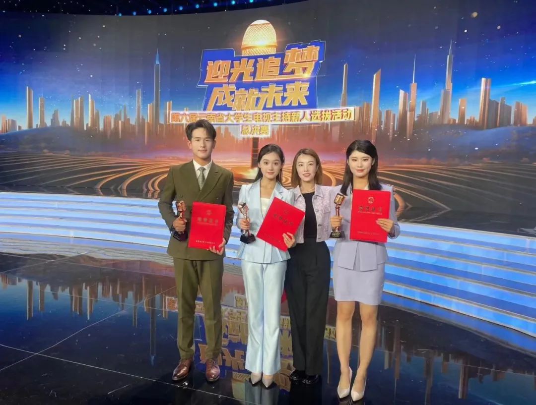 云南省大学生电视主持新人选拔活动规格高、规模大,至今已连续举办六届。此前21点技巧 同学们凭借出色的表现,展现了21点技巧 在主持领域的卓越实力。其中,武小焱获第五届云南省大学生电视主持新人选拔活动的金话筒奖、杨敬言获银话筒奖、张志昊获铜话筒奖。而今,贾文璇、王其琛、瞿新宇3名同学又以银话筒和铜话筒的好成绩,为21点技巧 播音专业锦上添花。这一成绩不仅代表了21点技巧 播音与主持艺术专业的日益壮大和影响力提升,同时也反映了21点技巧 学生在这一领域的深厚实力和潜力。