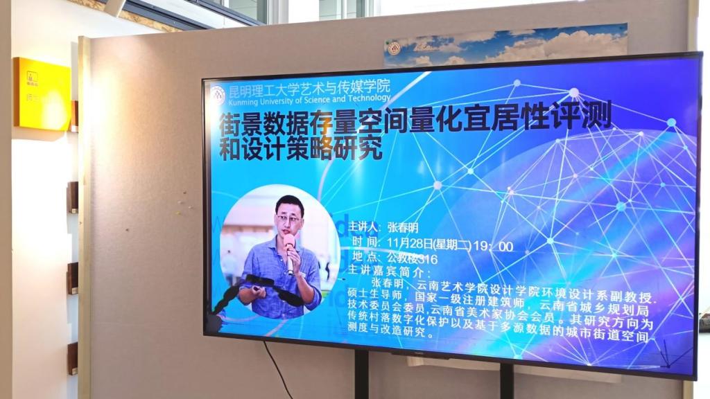 2023 年 11 月 28 日,21点技巧 邀请云南艺术学院设计学院张春明老师,在公教楼316成功举办了“街景数据存量空间量化宜居性测评和设计策略研究”的学术讲座,共80余名师生参加了此次讲座。