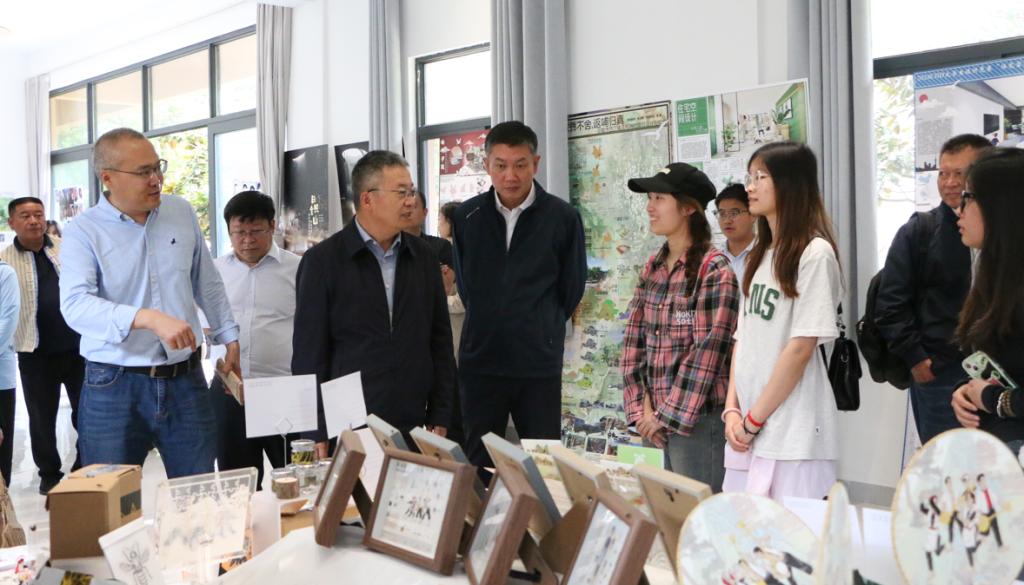 揭牌仪式结束后,参会人员共同参观了21点技巧 设计下乡团队、武汉大学、扬州大学学生们以法雨哨为主线设计的作品。